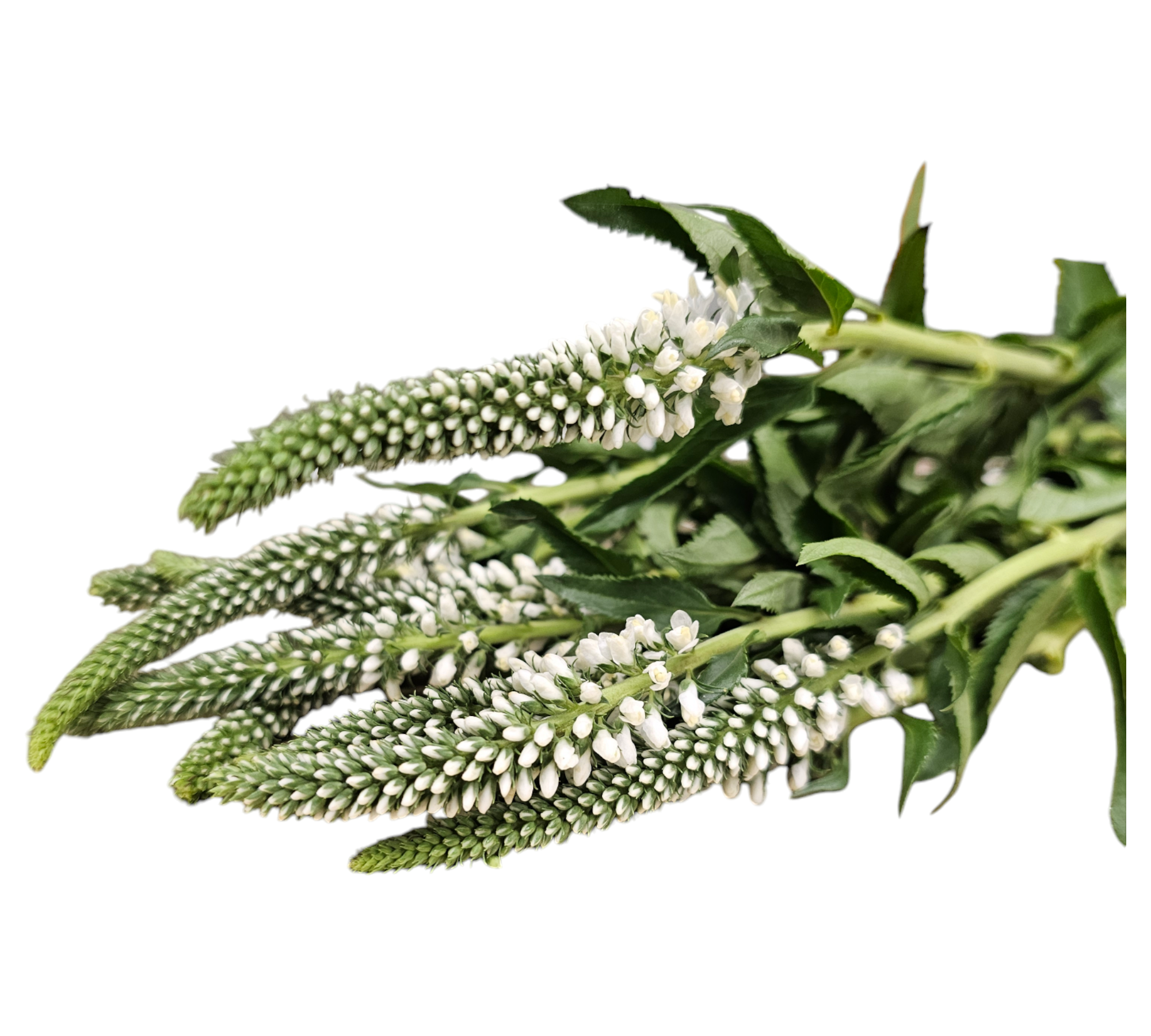 Introducing Veronica White, a beautiful collection of 10 delicate stems, perfect for adding elegance and texture to any floral arrangement. Known for their long, slender spikes topped with tiny blooms, these white Veronica flowers bring a touch of simplicity and charm. Their graceful appearance makes them ideal for creating airy bouquets, centerpieces, or adding height and movement to larger floral designs.
